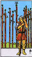 Nine of Wands → This is the card of fragile strength. You’ve been through a battle. You need to rest a while before your next trial, however, it will be an easier one. Gathering strength. Problems still to be dealt with. An uncomfortable wait.
